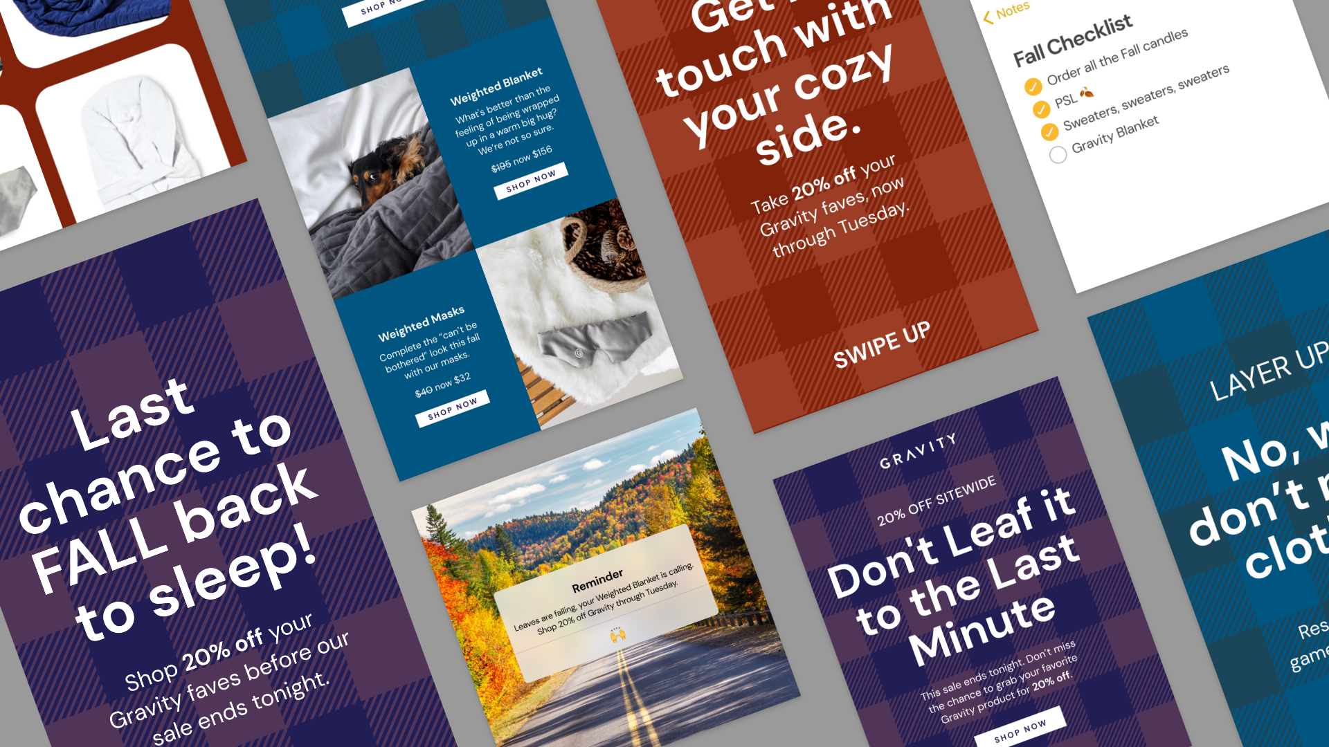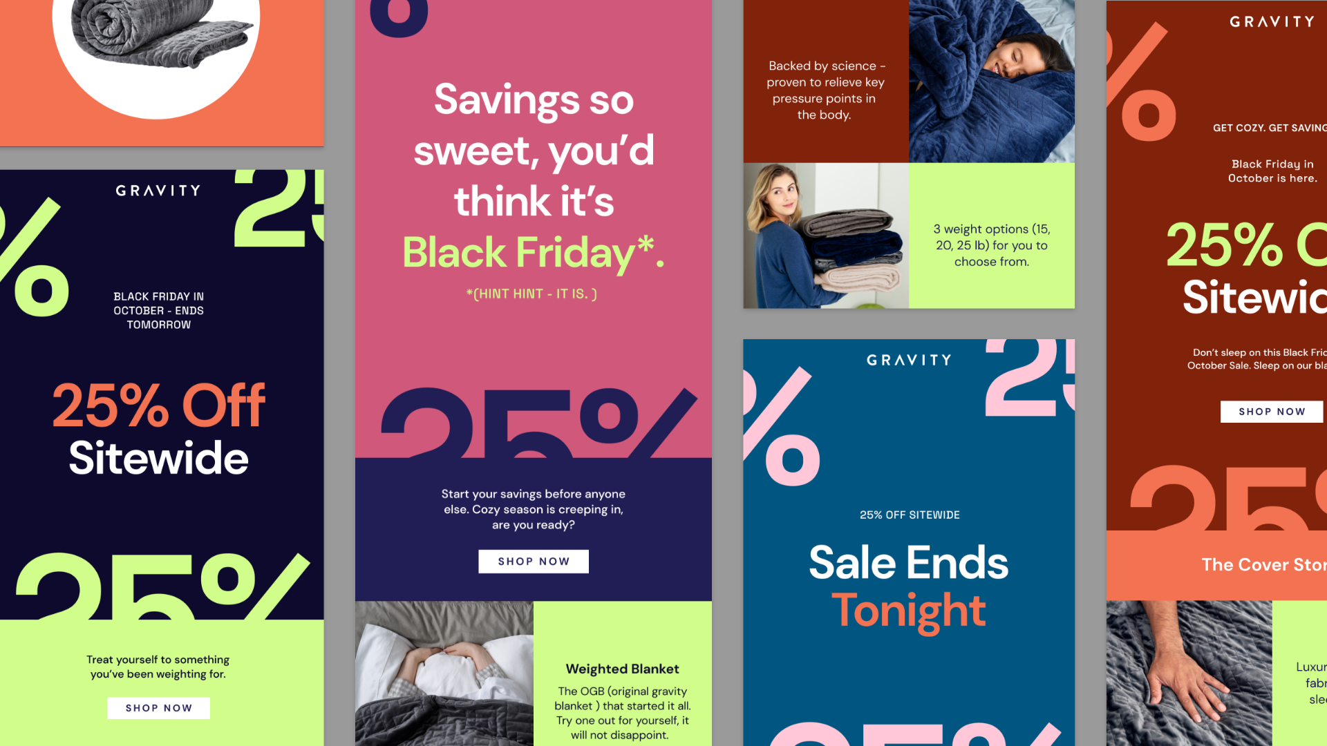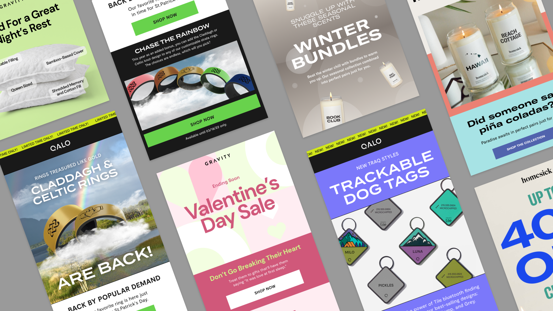 Art direction and execution of email marketing assets for campaigns with Strava, QALO, Homesick and Gravity.